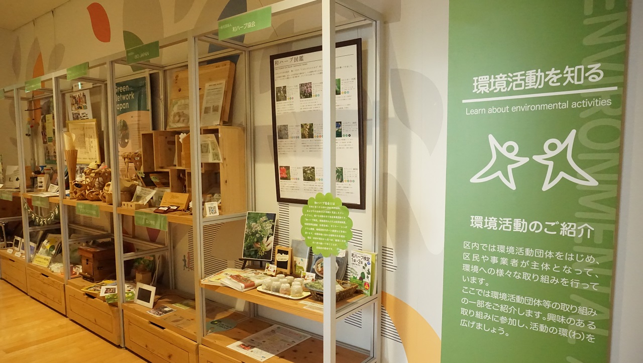 “環境”に関わる情報や、環境情報センターに登録している環境活動団体の活動情報やイベント情報、団体が作成した作品などを展示しています。